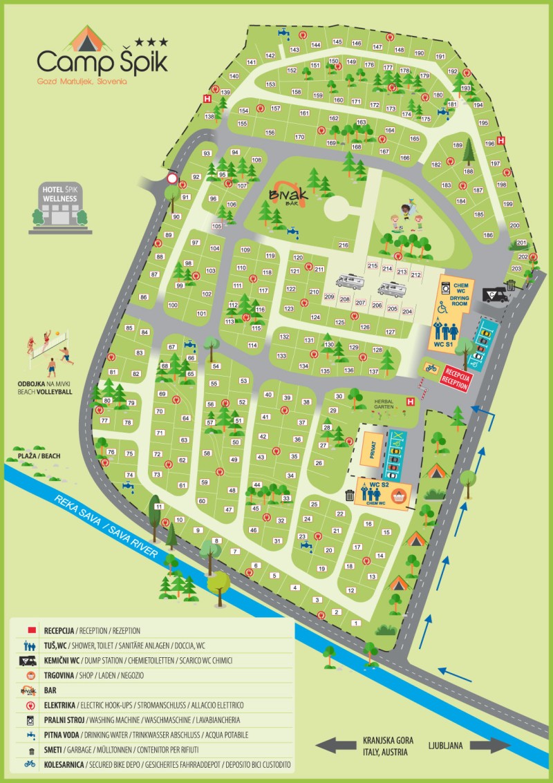 Met elkaar gaan we naar de prachtige camping 'Camp Spik'. De camping ligt nabij het Triglav Park in de Julische Alpen in een prachtige omgeving. De rivier ‘Sava’ stroomt langs de camping dus het is daar heerlijk om af te koelen en dammetjes te bouwen.