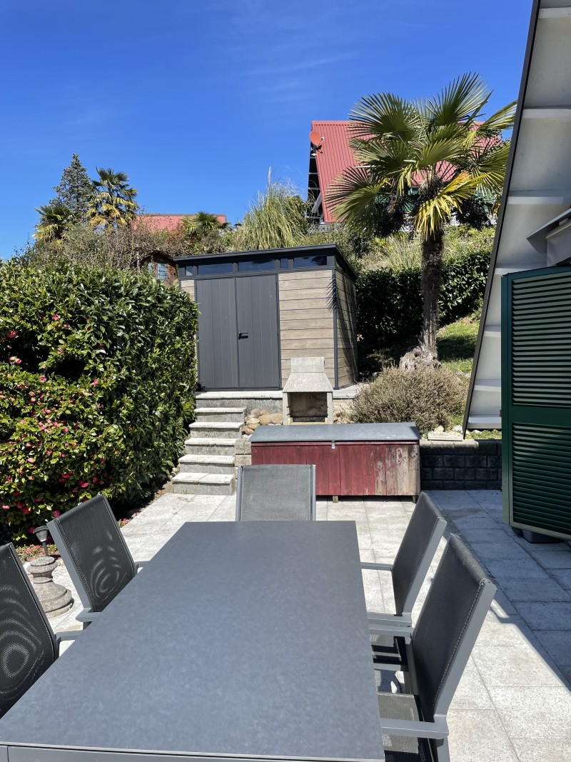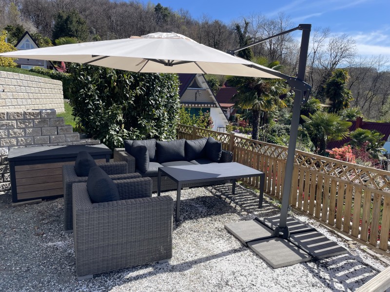 Op het gemeubileerde terras aan de achterzijde heeft u uitzicht op de uitgestrekte bossen en het Lago Maggiore.