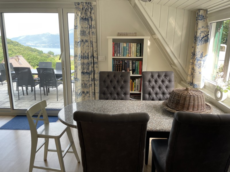 Woon-/eet kamer met uitzicht op het Lago Maggiore.