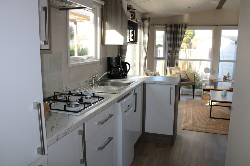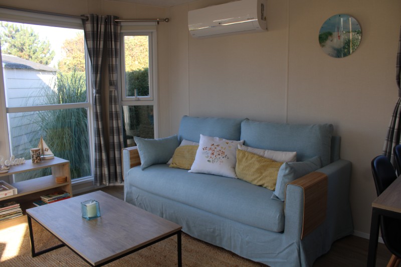 Fijn, nieuw chalet aan de rand van het park. Van alle gemakken voorzien, voor een zomervakantie of om in het laagseizoen uit te waaien op het stand.