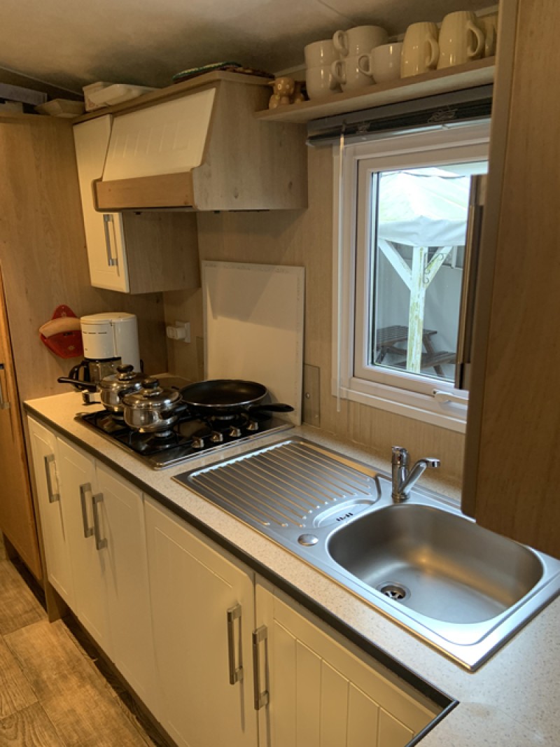 De caravan is comfortabel ingericht en geschikt voor maximaal 6 personen.